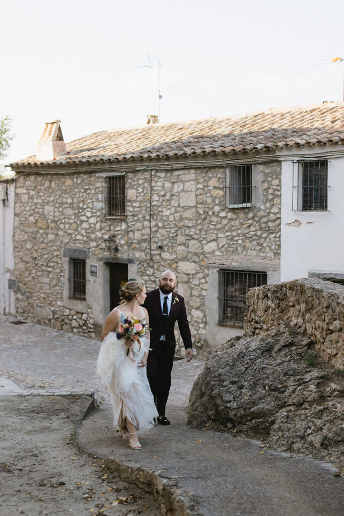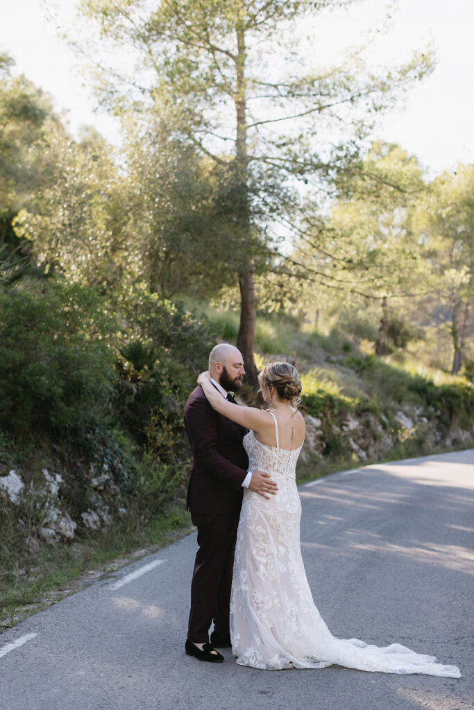 After the ceremony, Ellie and Beau snuck away for a photo session through the countryside : tiny streets, rustic typical Spanish houses, unique view of the countryide and the fields. They ended dancing on a desert road in the middle of the forest. An intimate and romantic dance under the Spanish sunlight