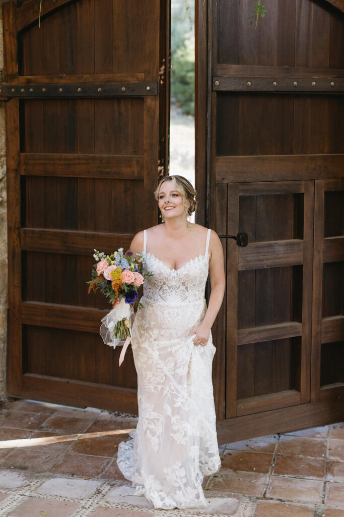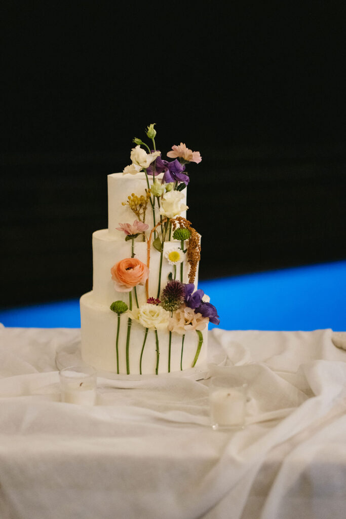 let’s not forget the wedding cake, a stunning 3-tiered white cake decorated with the same flowers of the palette to match the natural and organic feeling of the day.